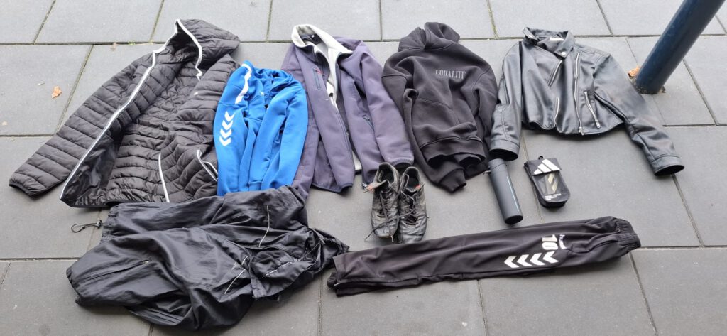 De voorwerpen op de foto zijn achtergebleven in de kleedkamers en/of kantine van NKVV. In verband met de startende verbouwing zijn we aan het opruimen geslagen. De achtergebleven spullen kunnen afgehaald worden op donderdagavond 4 of zaterdag 6 september 2025 in de kantine. Daarna zullen de item in de container belanden.