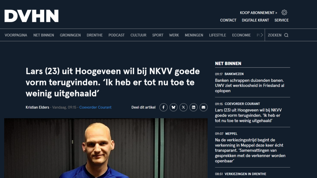 Lars Profijt probeert volgend seizoen bij NKVV in Dalerpeel de goede vorm van weleer terug te vinden en goals te gaan maken. De 23-jarige spits uit Hoogeveen is nu nog actief voor zondag derdeklasser Pesse. Hoewel hij na de zomer het shirt van NKVV aantrekt om er te voetballen, blijft hij als assistent-teamleider verbonden aan Pesse.